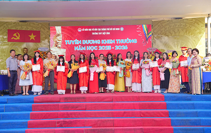 Trong Lễ Giỗ tổ, Trường THPT Hiệp Bình đã tuyên dương, khen thưởng nhiều giáo viên, học sinh đạt thành tích xuất sắc trong giảng dạy, học tập và hoạt động phong trào năm học 2025-2026. Đây chính là “lễ vật” lớn nhất mà thầy trò nhà trường dâng lên vua Hùng với lòng thành kính, biết ơn và lời hứa về sự nỗ lực, cố gắng để không ngừng nâng cao chất lượng giáo dục nhà trường. Điểm nhấn đặc biệt là hoạt động tuyên dương học sinh xuất sắc với sự tham gia của phụ huynh. Đây là cách làm giàu ý nghĩa giáo dục, gắn kết gia đình và nhà trường trong hành trình trưởng thành của học sinh.